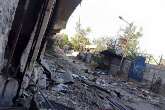 Targeting the only Road in Khan Al Sheih camp with Artillery Shells